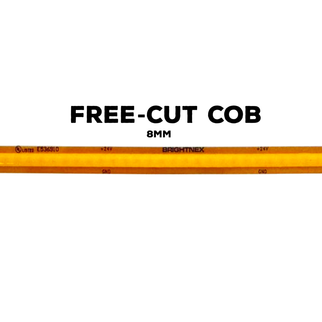 This cuttable and free-cut COB LED strip light offers maximum flexibility with ultra-close 2mm cut points and a slim 8mm width. Featuring a dense array of 528 LEDs per meter, it delivers a smooth, dot-free glow perfect for architectural, cabinet, and accent lighting. With a high CRI of ~90, colors appear vibrant and true to life. Designed for professional indoor use, it’s UL Certified for safety and reliability. Compatible with 24V DC systems and available in long runs of up to 82 feet, it's ideal for both residential and commercial projects.